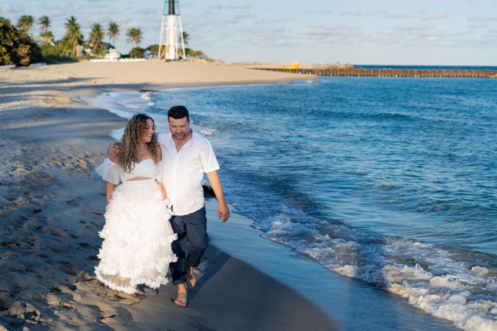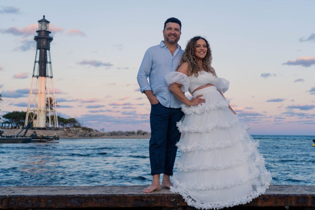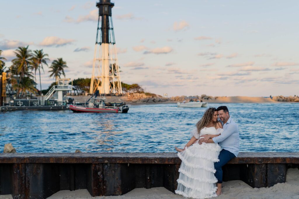 Esse ensaio de casal em pompano Beach, Lighthousepoint, na Flórida, no final da tarde, com o por do sol incrível e um cenário deslumbrante.